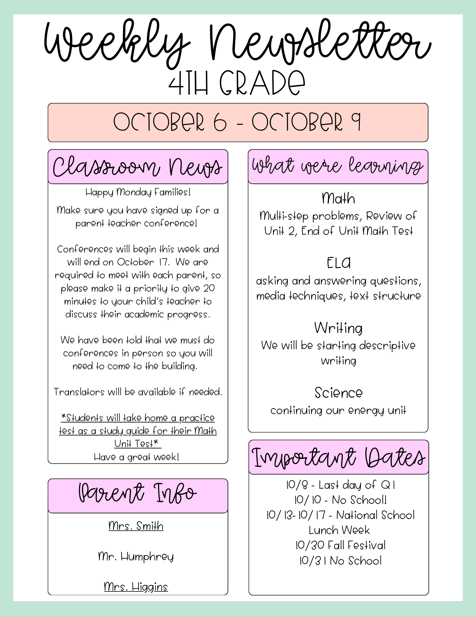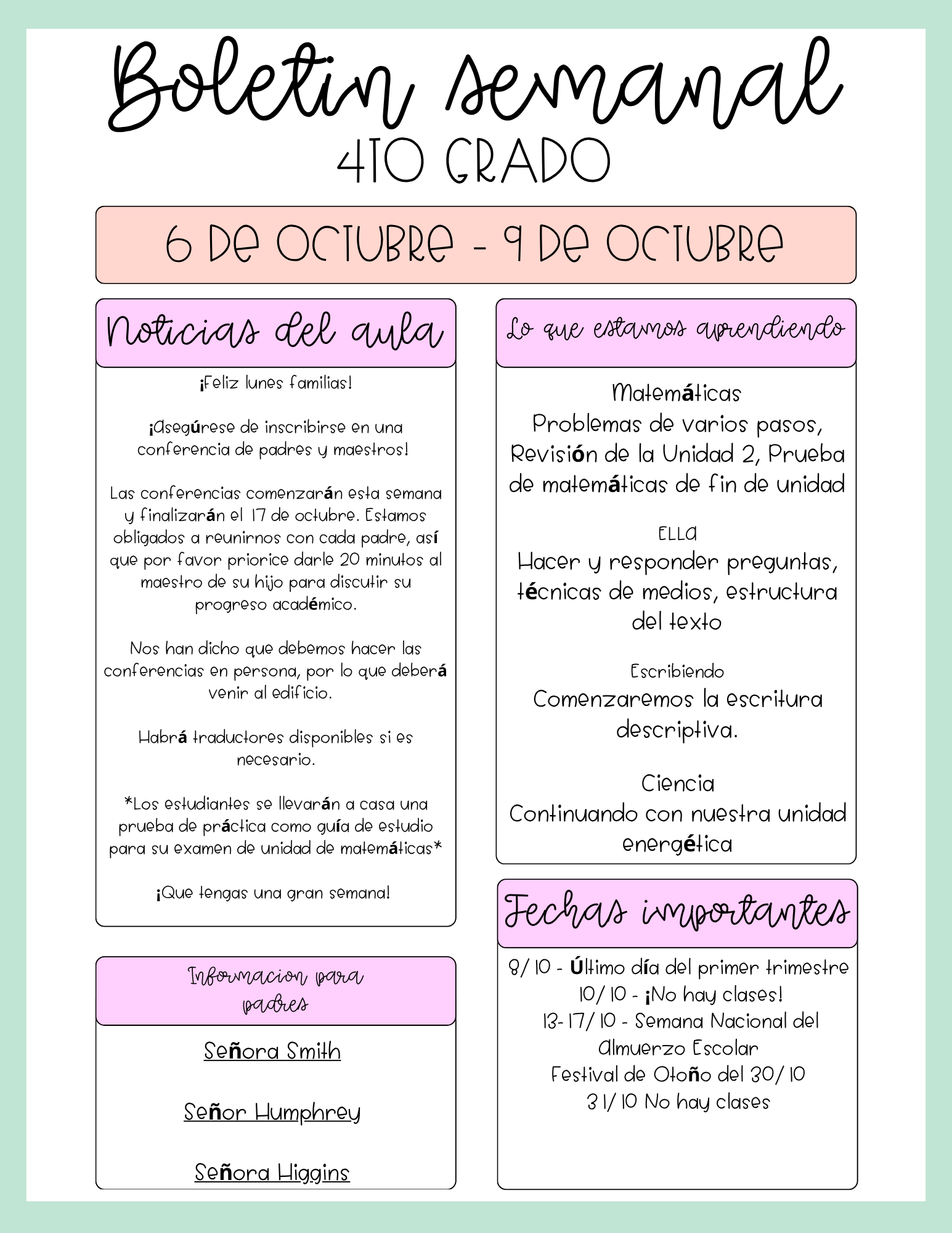 Students No School Teachers will have professional developement and students will not attend school, October 10th.
